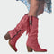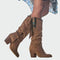 Дамски каубойски ботуши, вдъхновени от бохо-вестерн стил, изработени от велурен материал с уникални детайли. Разполагат с ресни отстрани и декорации с тюркоазени камъни и метални елементи, които придават уникален характер. Среден ток осигурява комфорт и елегантност, идеални за случаи, които съчетават свобода и стил.