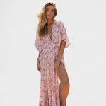 Тази бохо рокля в нежни тонове с елегантен разрез е перфектният избор за летни дни и вечерни излизания. Летящият силует подчертава женствеността, докато разрезът добавя доза съблазнителност и лекота. Идеална за плажа, разходки край морето или специални поводи, когато искате да блеснете.