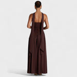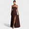 Тясната горна част подчертава талията и деколтето, създавайки елегантна и мощна линия.