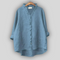 Лека ленена блузка с V-образно деколте и деликатно воланче по дължината на закопчаването. Свободният крой и дългите ръкави, които могат да се навиват, осигуряват комфорт, докато асиметричният подол с по-дълга задна част придава модерен вид.