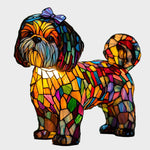 Внесете чар и цвят в пространството си с тази резинова лампа Ши Тцу, завършена с сладък детайл на лък. Нейното мозаечно сияние добавя както топлина, така и индивидуалност на всяка стая.