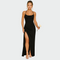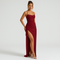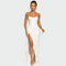 Елегантна бяла рокля с тясна кройка, която подчертава женствеността с простота и изисканост. Има тънки презрамки, прилепнал корсет и дълбок разрез отстрани, който добавя динамика и чар. Макси дължината я прави идеална за вечерни излизания, официални събития и специални поводи.
