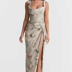 Импозантна и сензуална рокля, която комбинира елегантност с дръзка женственост. Нейната тясна силуета обвива тялото, докато разрезът на крака добавя неустоимо привлекателност. Идеална за вечерни излизания и специални поводи, когато искаш да се откроиш.