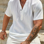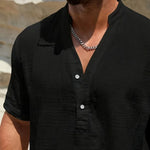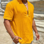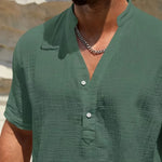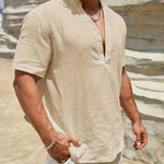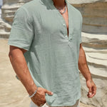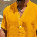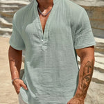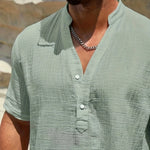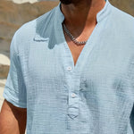 Изработена от мек памучен микс с леко намачкана текстура, тази риза осигурява отлична вентилация. Тя ви държи хладни и удобни, дори в най-горещите дни на лятото.