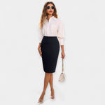 Проста, практична и винаги елегантна – тази миди пола е идеален елемент за ежедневни комбинации с характер. Високата талия подчертава силуета, докато нейната вечна дължина я прави перфектна за преходните сезони.