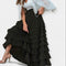 Лека и запомняща се, тази многослойна пола от тюл комбинира романтика и елегантност. С високата си талия и класическата A-силует, тя придава движение и финес на всяка стъпка, идеална за изискани поводи.