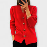 Този кардиган от дебел, мек материал предлага комфорт и класически вид. Благодарение на едноцветния си дизайн и дълбокото V-образно деколте, лесно може да се комбинира с основни дрехи, ризи или рокли.