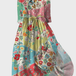 Многоцветна Цветна Рокля в Пачуърк Стил