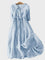 Тази нежна синя рокля излъчва спокойствие и елегантност, идеална за всякакви поводи. Нейният прост силует осигурява комфорт и вечен стил, докато коланът в талията придава женствена фигура с естествено падане на тъканта.