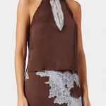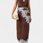 Рафинирано предложение, което съчетава чувственост и съвременност. Драгийца комбинира тесен топ и съответстваща пола, и двете подчертавани с контрастни чипкови пана, които добавят текстура и женственост. Балансът между тоновете създава визуална дълбочина, докато силуетът, който прилепва, оформя фигурата с елегантност. Универсален избор, който се адаптира както за деня, така и за нощта с примамлив вид.
