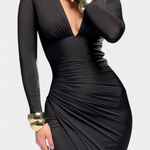 Елена Рокля с Дълги Ръкави и Дълбоко V Деколте