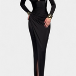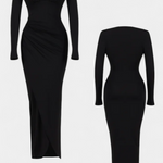 Елегантна и извечна, роклята Елена е проектирана да подчертае фигурата с перфектен баланс между изисканост и универсалност. Нейното дълбоко V деколте създава женствена и стройна силуета, докато деликатното плисиране добавя финно движение и рафиниран вид. Дългите ръкави я правят идеално облекло за свежи сезони или формални поводи, когато искате да се откроите с елегантност.
