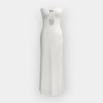 Елегантна и ефирна, тази рокля без презрамки подчертава женствеността с дискретен стил. Идеална за слънчеви дни и летни вечери с елегантност и комфорт.