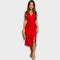въплъщава елегантност и динамика. Нейният впечатляващ кроеж с плисирни детайли на деколтето и елегантен разрез на крака създава фина и женствена силует. Идеално за официални вечерни появи и специални поводи.