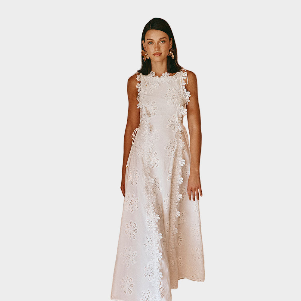 Елегантна Бяла Миди Рокля