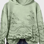 Този джъмпер с капюшон от дантела в зелено съчетава удобството на ежедневното облекло с елегантността на дантелата. Специалният нюанс на зелено носи свежест и естественост, докато капюшонът и дантелени детайли създават уникален, съвременен вид.