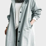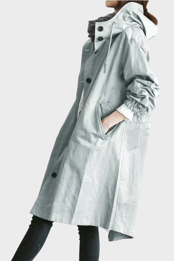 Този тренчкот съчетава стил и удобство, създавайки модерен и елегантен външен вид. С дълга линия и свободен силует, той е идеален за носене върху различни облекла, осигурявайки комфорт и защита през прохладните дни.