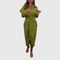 Тази рокля съчетава класическа елегантност и модерен дизайн. Риза-крой с яка и копчета в комбинация с ефектна връзка в талията създава ласкава силуета и подчертава женствеността. Мекият материал осигурява комфорт, а миди дължината я прави перфектен избор за бизнес срещи, вечерни излизания или тържествени събития.