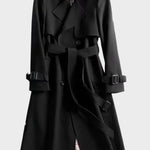 Това палто е съчетание между класика и модерна визия. С перфектно изработена кройка, двойни копчета и колан за стягане в талията, то подчертава фигурата и придава изтънченост на всяка визия. Детайлите с катарами и висококачествената подплата придават завършен луксозен вид. Подходящо е както за ежедневието, така и за специални поводи.