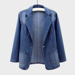 Сандра - Класически Деним Блейзър предлага класически силует с модерен чар и деликатна доза изисканост. Перфектен е за офиса, срещи и свободно време, а неговите деликатни детайли добавят изразителен, но ненатрапчив вид.