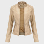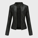Това дамско кожено яке съчетава класическа визия с модерна кройка, подчертаваща женствената линия. Изработено от висококачествена мека еко кожа, то осигурява комфорт и издръжливост без компромис със стила. Централният цип и фините декоративни шевове придават изискано излъчване, а стоящата яка с копчета добавя нотка на бунтарски чар. Перфектно за носене с дънки, рокля или пола – това яке е задължителен елемент за всяка стилна гардеробна.