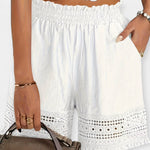 Прозрачни и женствени, тези летни шорти комбинират романтични детайли от дантела с практичността на джобовете. Леката им линия и специална текстура ги правят идеални за разходки, ваканции и отпускащи летни моменти.